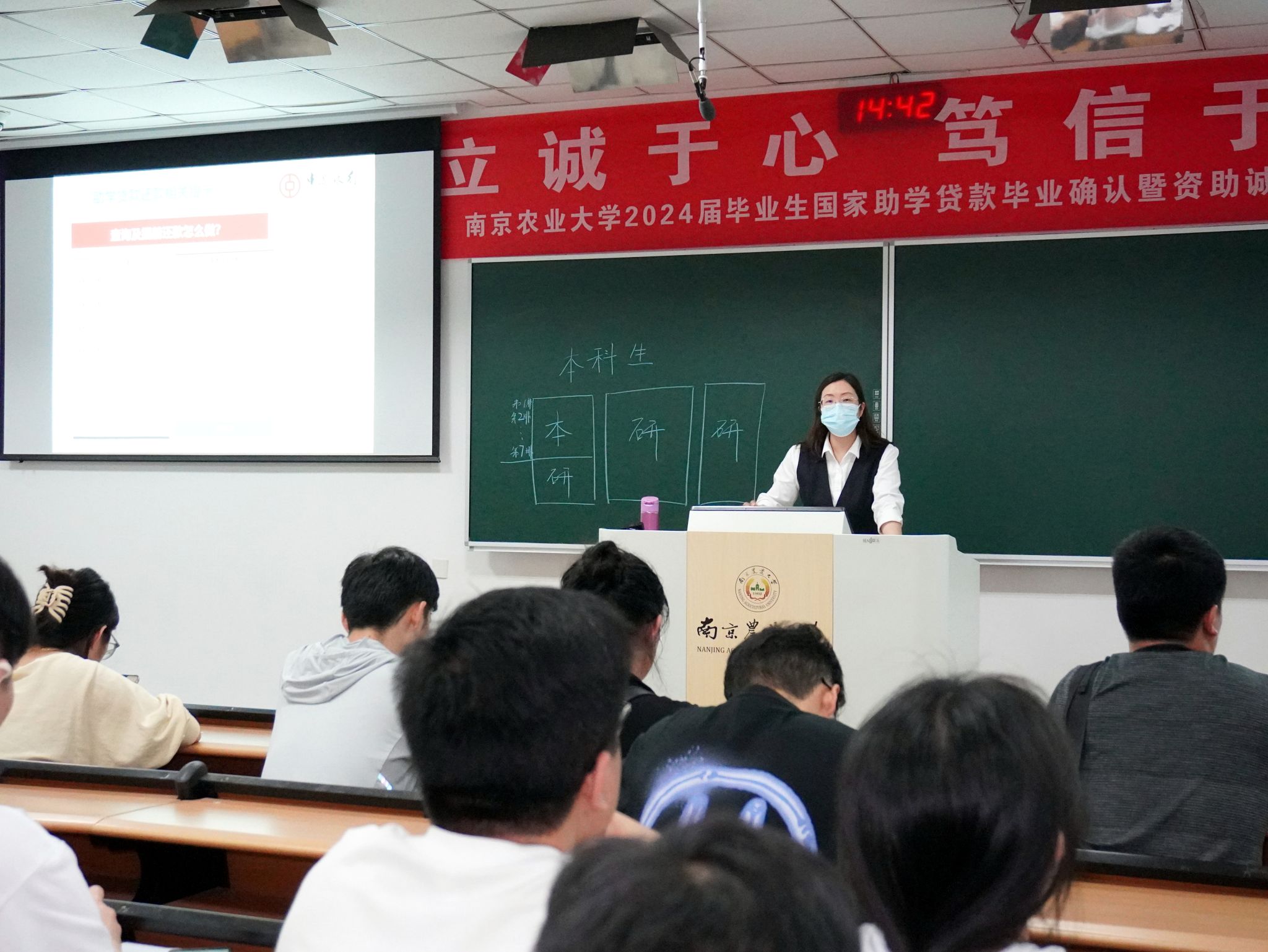 5月22日,我校举行“立诚于心,笃信于行”2024届毕业生国家助学贷款签约暨资助诚信主题教育活动。中国银行个贷部经理王雯就国家助学贷款毕业确认事宜进行了宣讲。200余名本科生、研究生毕业生到现场认真聆听了宣讲并完成了签约及继续贴息申请。