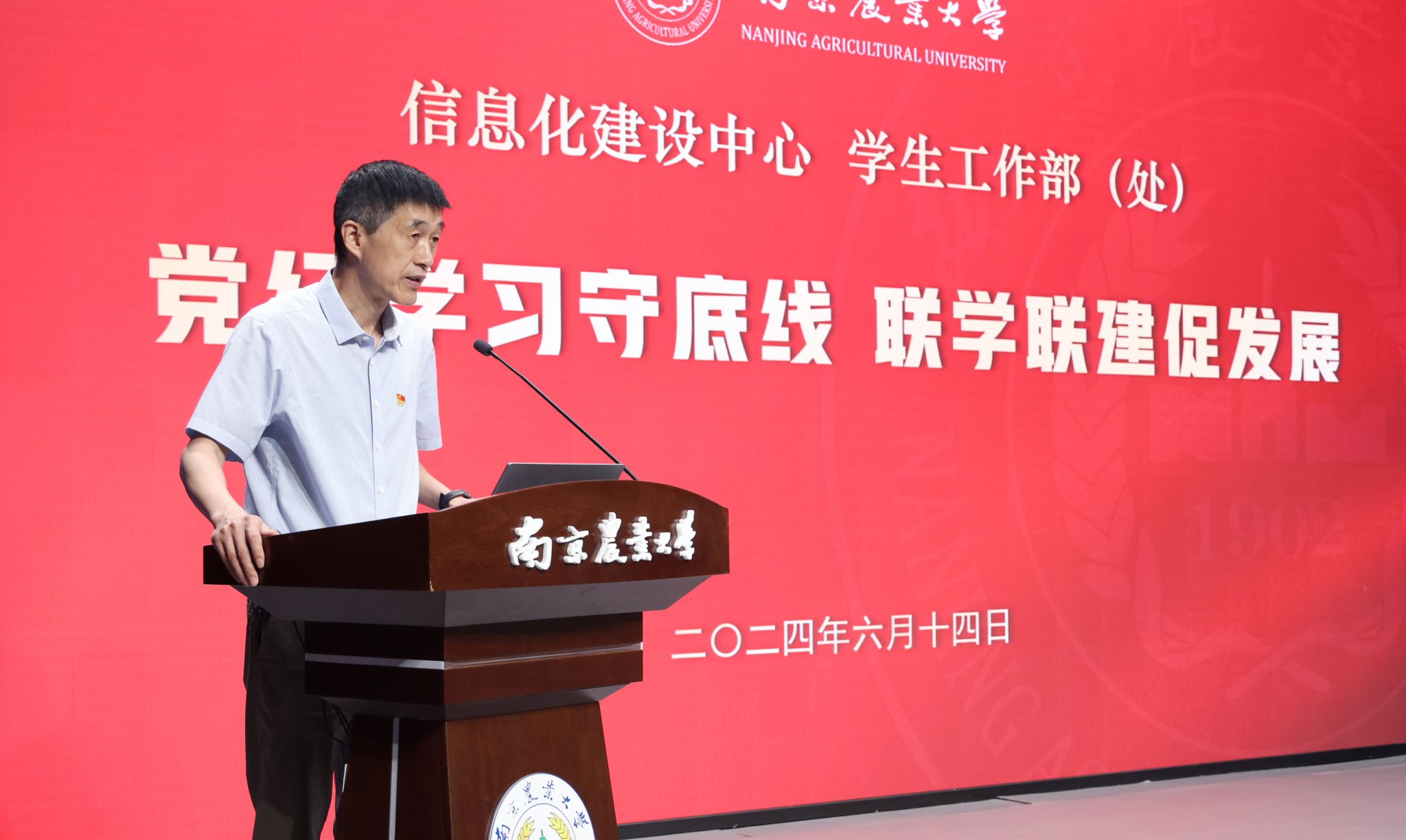 6月14日,信息化建设中心、学生工作部(处)两部门在图书馆六楼演播厅联合举行“党纪学习守底线联学联建促发展”主题党日活动,会议由信息化建设中心主任查贵庭主持。