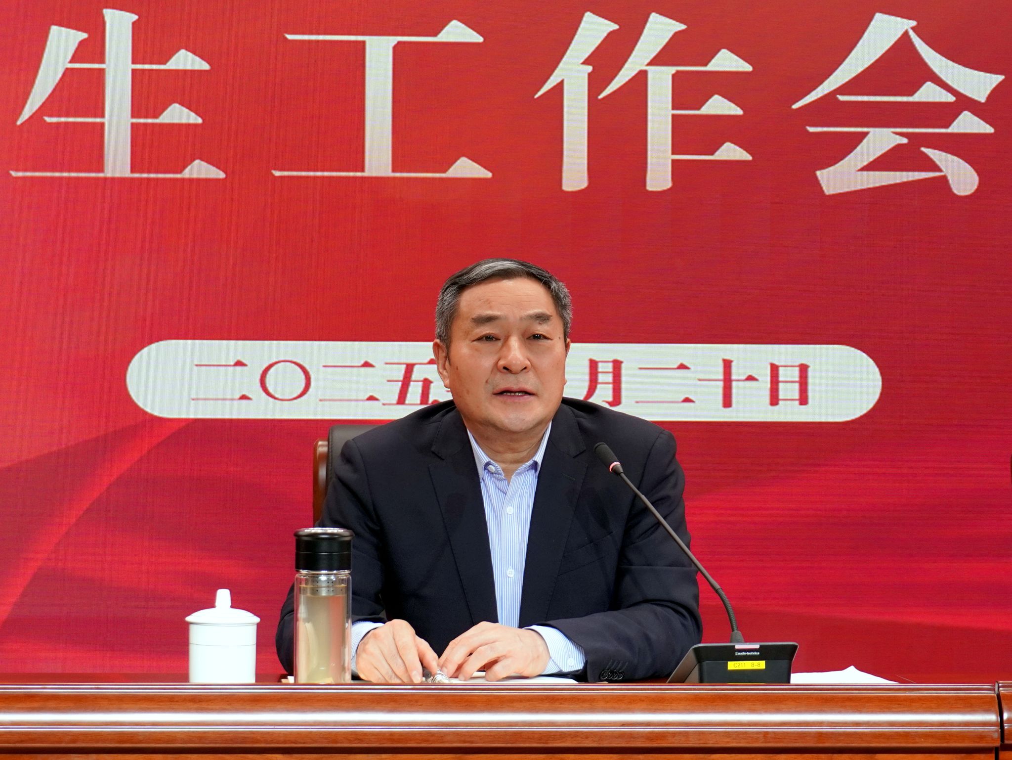 2025年2月20日下午,我校新学期学生工作会议在滨江校区会议中心3号报告厅召开。学生工作部(处)、校团委、研究生工作部、各学院分管学生工作的党委副书记以及全体辅导员参加会议。会议由校党委副书记刘营军主持。