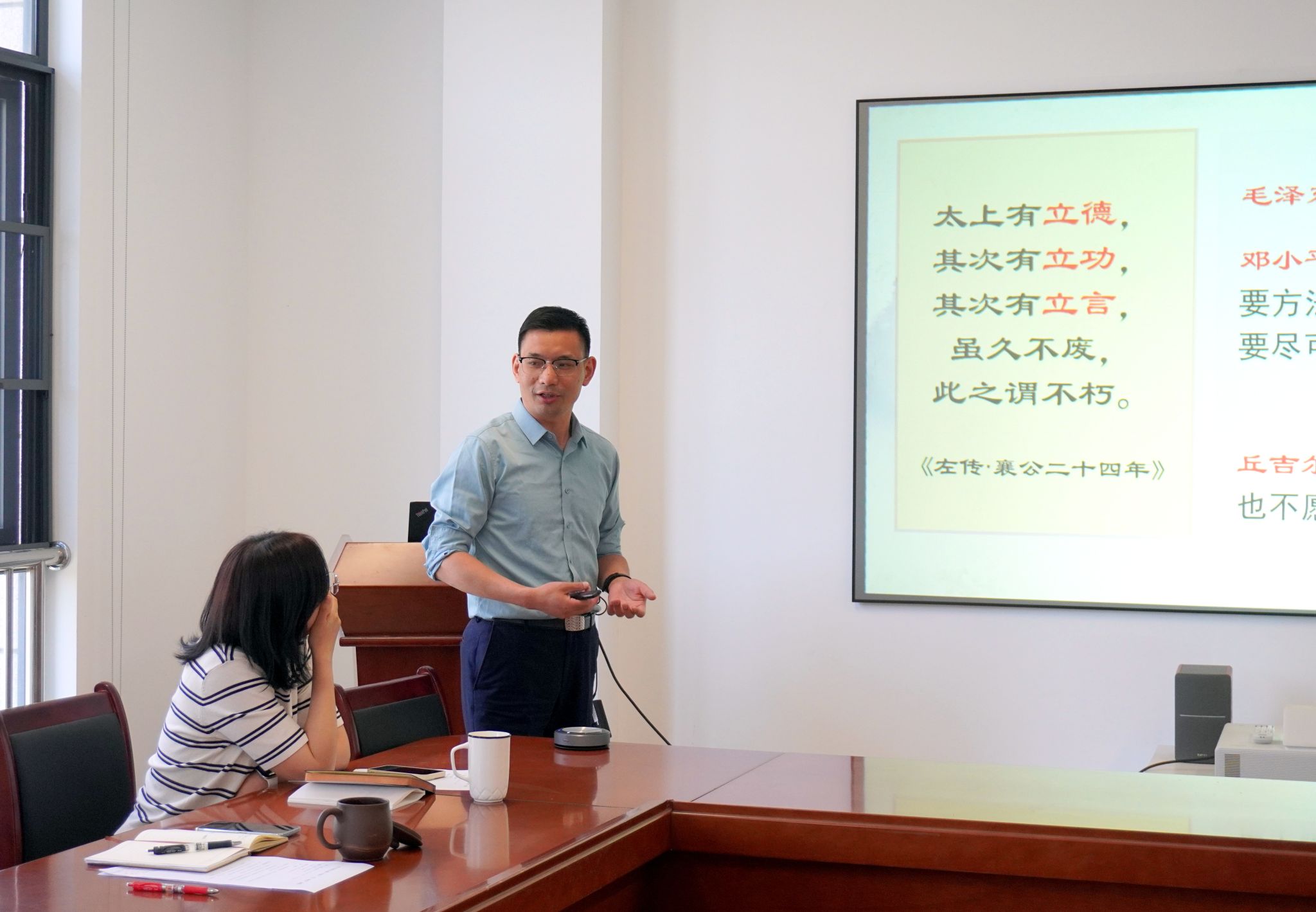 最后,为解决高校学工队伍“不会写、不敢写”等问题,切实提高党员在学生工作中的文稿撰写能力与思想引领水平,党支部副书记黄绍华以《一字千钧力,九章育人心——高校学生工作文稿“爆款逻辑”的若干断想》为题,为全体党员讲授党课,呼吁党员增强“脚力、眼力、脑力、笔力”。