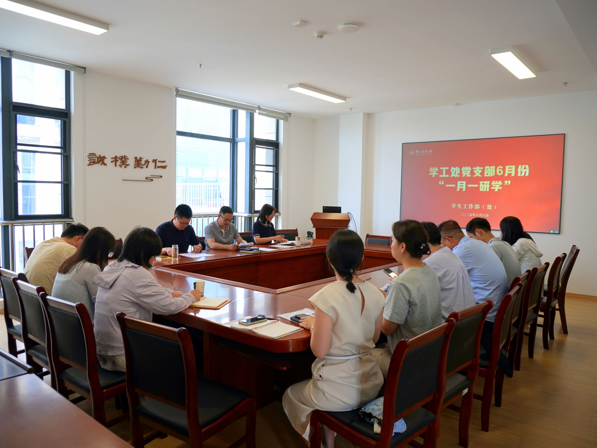 6月6日上午,学生工作处党支部在滨江校区行政楼B342召开“一月一研学”学习活动。会议由学生工作处(部)党支部书记施雪钢主持,学工处党支部全体成员参会。