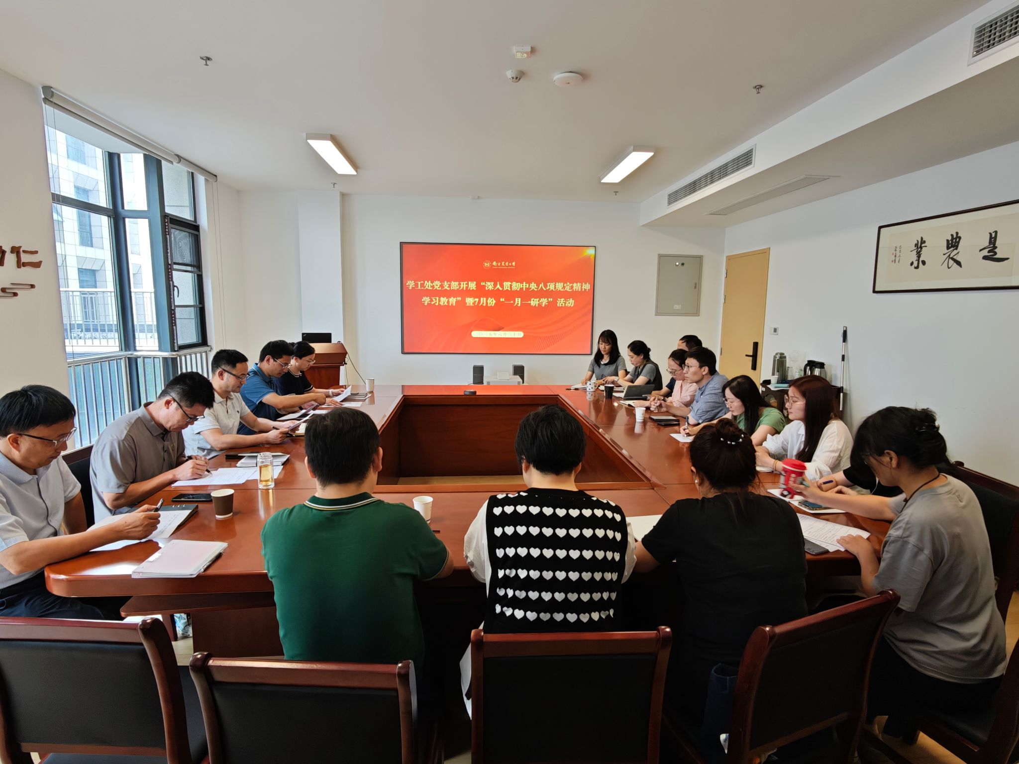6月30日上午,学生工作处党支部在滨江校区行政楼B342召开“一月一研学”学习活动。会议由学生工作处(部)党支部书记施雪钢主持,学工处党支部全体成员参会。