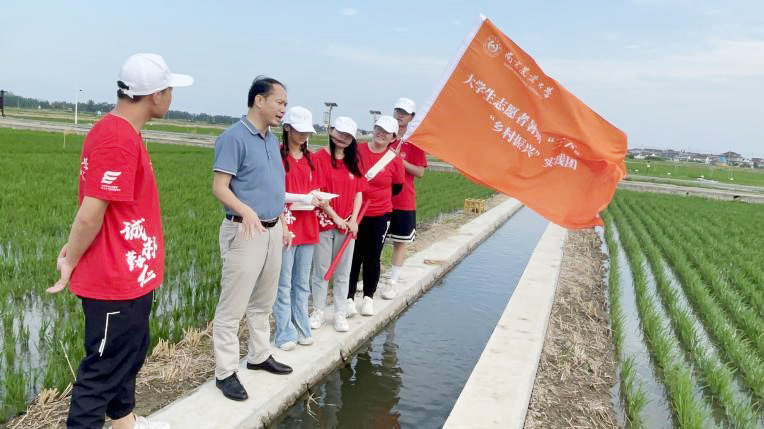 二是利用企业和社会资源,打造学生深入观察行业发展的实践课堂,推动新型农业发展。农学院“吾为兴秾”实践团队来到江苏省兴化现代农业产业示范园,在刘小军教授带领下深入田间地头,实地观摩了无人插秧和智能灌溉技术的应用,从中了解学习现代农业生产机械化、信息化的发展趋势和无人机在智慧农业领域应用的前沿知识,从而进一步坚定强农兴农的理想信念。人文院“秾行天下”暑期社会实践团队参观了南京楠小秾农业科技有限公司的新沂万亩稻田综合种养研究院,通过“天空地”的物联网系统了解到融合绿色稻米和生态水产两大产业的“水稻+N”模式,制作形成宣传单页,向周边乡村的养殖户推广宣传低污染、高附加值的绿色生态农业种养模式,助力现代生态农业发展。信管院“农机化发展调研”团队走访了天纬农业科技有限公司等涉农企业,亲自操作了公司的农机设备,并就对企业工作人员进行的农机化发展调研情况整理形成调研报告,为实现优化农机资源配置和赋能农民增收提出了建设发展农机合作社,推动小农户和现代农业企业定点合作等切实建议。