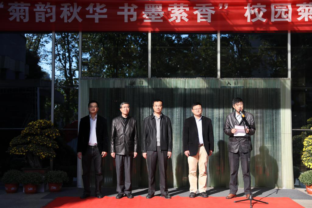 陈发棣在开幕式上作了重要讲话。他说,菊花是四大切花和十大传统名花,也是我校多年来公认的校花,校园菊花展改变了“校园中看不到校花”的历史。菊花不仅花型、花色变化丰富,是自然界创造的奇迹,还有多种食用、药用的功能,更可贵的是,菊花拥有非常深厚的文化底蕴,与梅兰竹并称为花中的四君子,以其高洁隐逸的品质、傲霜怒放的精神赢得古往今来的文人墨客和广大人民群众的喜爱。我校菊花研究历史可以追溯到1944年,至今已有70多年的历史,近年来学校菊花科研与人才培养硕果累累、影响力享誉世界,已成为全世界保存菊花种质资源最多的单位。他希望广大师生通过参加菊展活动,不仅能领略菊花品种的多样性、南农菊花栽培技术的精湛性,更能深切体会其中的菊花文化,传播菊花文化、弘扬菊花精神,做一个菊香、书香相伴的读书人。