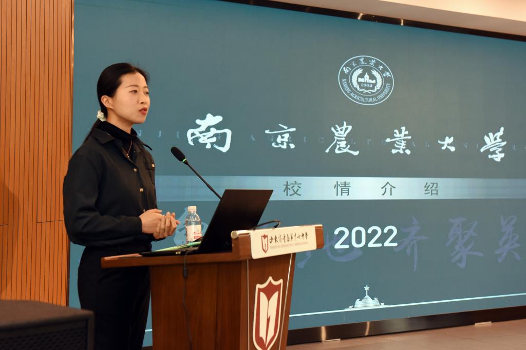 动物医学院本科生辅导员李欣欣为从校园风景、历史沿革、学校声誉、南京人物、师资队伍、学科水平、科学研究七大板块进行了详细介绍。同时围绕人才培养、校园生活、文体竞赛、就业情况、招生政策进行解读。