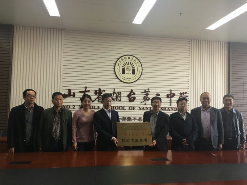 座谈结束后,双方签订教育合作协议,熊富强代表我校授予烟台二中“优质生源基地”牌匾,张仁平副校长代表烟台二中接牌。