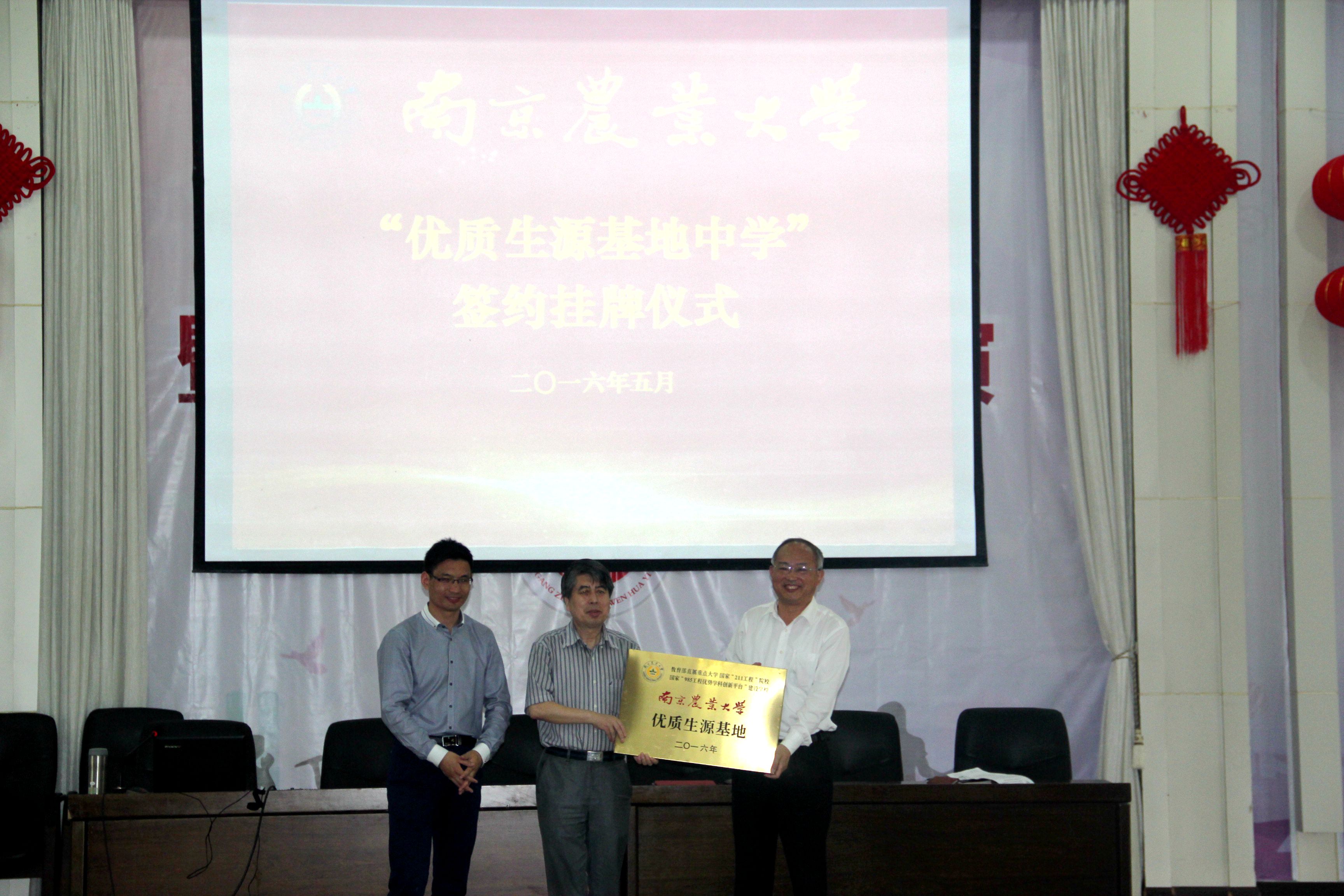 5月26日,在植物保护学院的组织下,我校湖北省地区招生宣传组赴黄冈中学举行“优质生源基地”签订仪式。研究生院常务副院长侯喜林、植物保护学院党委副书记黄绍华等应邀参观黄冈中学校史馆,并与工会主席王实泉、高三年级班主任进行座谈。侯喜林教授受邀做客学校“黄高讲坛”,为中学生做题为《园艺与生活》的专题讲座。