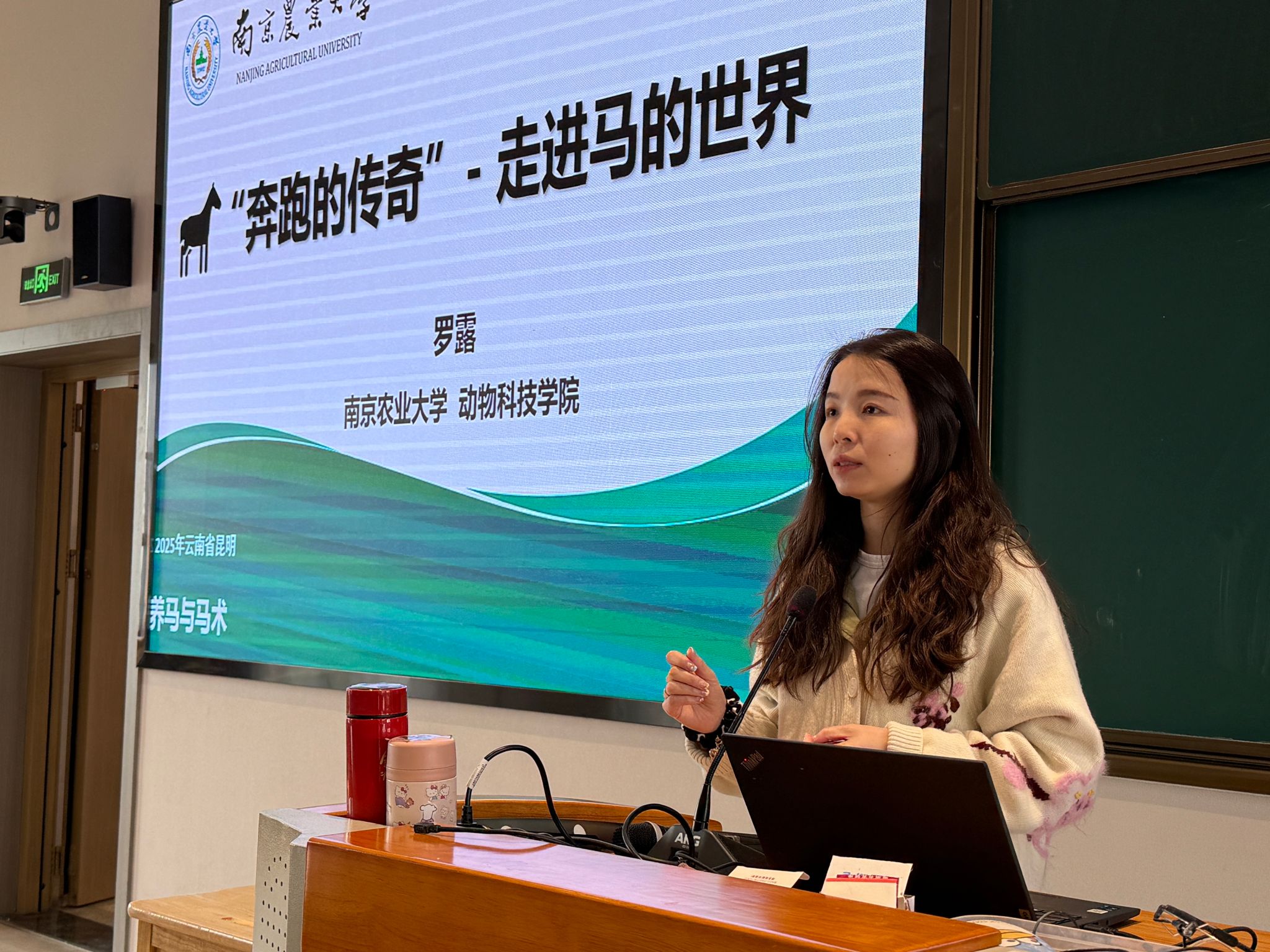 罗露以“‘奔跑的传奇’——走进马的世界”为主题,为四校千余名师生带来系列精彩讲座。她结合学科前沿,以“马是什么”“马的物种起源”切入主题,通过“物种起源探秘”“基因育种图谱”“科学驯养体系”三大模块,系统阐释了马科动物的演化历程与现代马业发展。讲座深入浅出,通过动态演示、即时问答等形式激发学生探索兴趣,现场互动频频,掌声不断。