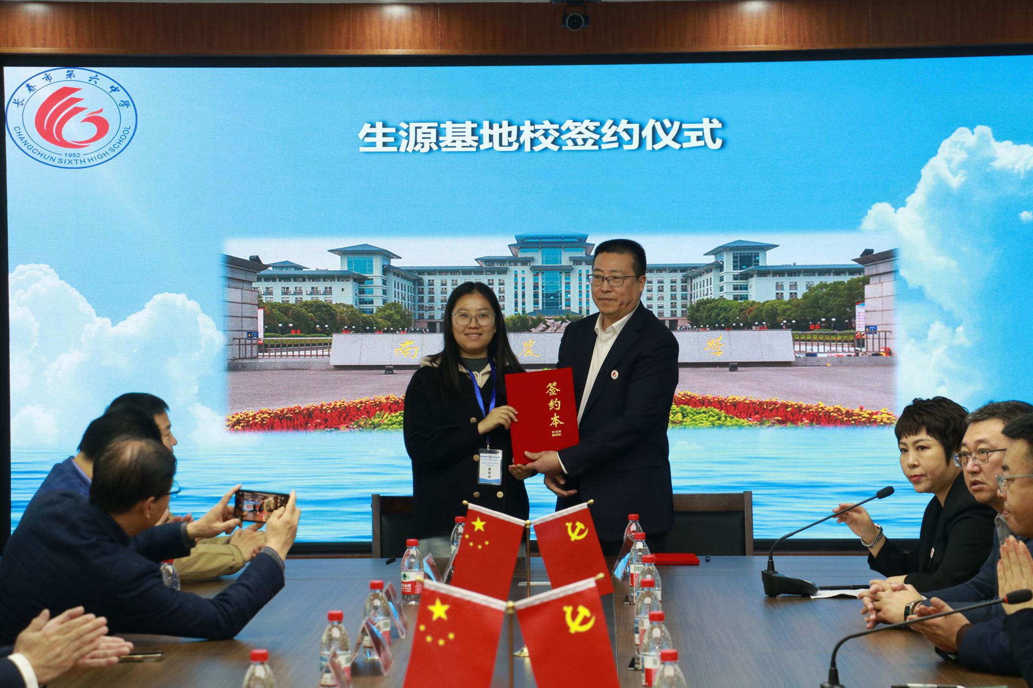 在各中学,招生组与中学校领导座谈交流,学校与长春市十一高中、长春市第二中学和长春市实验中学等3所高中签约ios版雷竞技官网优质生源基地并授予优质生源基地铜牌,学校向长春市第二中学、长春市实验中学、吉林省实验中学等3所高中授予奖学金保研喜报。