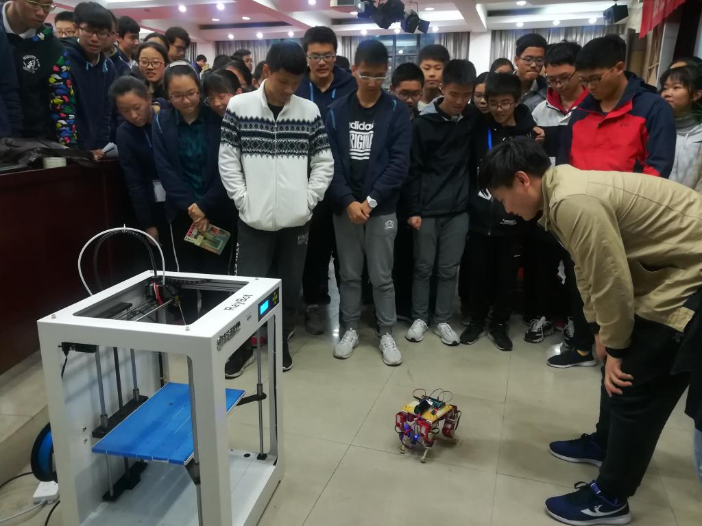 我院学生沈莫奇、徐文昌现场演示了3D打印、机器人等科技作品,并详细讲述了其作品原理、操作方法和功能,激发高中生对科技作品创作的热情及报考南农的积极性。活动现场,众多高中生详细询问了我校的专业设置、就业方向和往年录取分数等热点问题。活动不仅增进了考生对我校的进一步了解,而且扩大了我校知名度。今后,学院还将组织开展更加丰富的报告及学生科技作品进中学活动,全面推进学校与生源基地中学的对接,为推进学校“世界一流农业大学”建设做好人才储备。