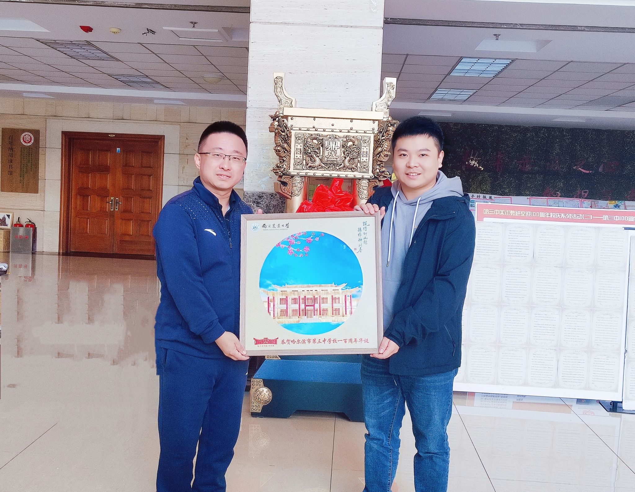 活动当天学校向哈尔滨市第三中学校领导赠送了精美麦秆画文创作为校庆贺礼。哈尔滨市第三中学校作为我校优质生源地中学,长期以来与我院保持着密切的联系,双方在招生宣传、填报志愿等工作中有着长期良好的合作关系,为我校输送了一批又一批优质生源。